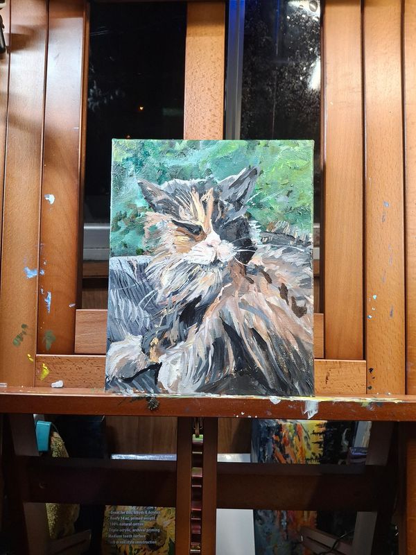 Pricing varies, based on size, number of animals, and background. For example, a 12" x 16" painting of a single animal with provided reference photos (as sharp as possible, please) is $600. Venmo, PayPal, Zelle, and cash are accepted.
